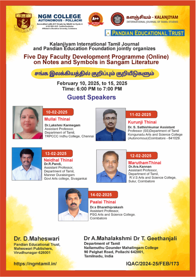 NGM College, Pollachi, a prestigious institution accredited with an A++ Grade by NAAC in Cycle 4 and boasting ISO 9001-2015 Certification, is set to host a compelling online Faculty Development Programme (FDP) focusing on the nuances of Sangam Literature. Affiliated with Bharathiar University, Coimbatore, NGM College is recognized for its commitment to academic excellence and…