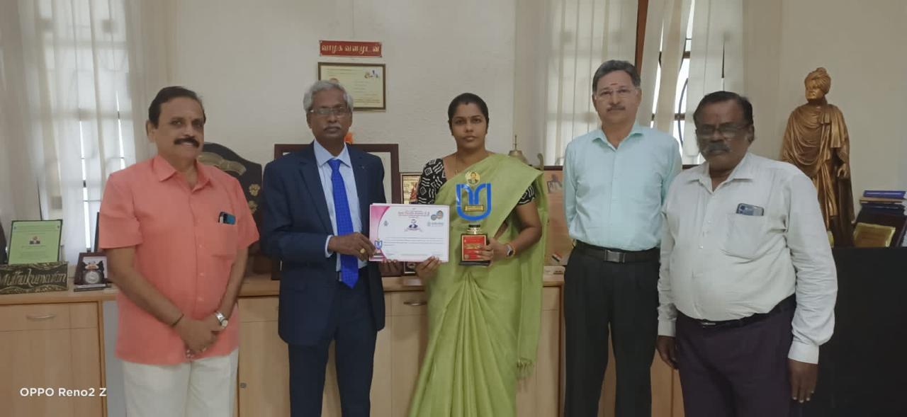 | Dr. M. V. Sathiyabama who have received National Award for Academia Excellence from I20R 2021. | |