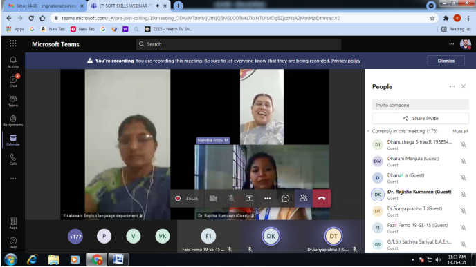The department frequentlty organises Guest lectures, Workshops, Seminars and FDP concentrating on LSRW skills by eminent literary scholar to usher in modern innovative thinking in the field of language and literature. To encourage latent talents the department organises competitions like Cookery, Rangoli, Poetry, and Drawing. It promotes creativity and supports Linguistic diversity.