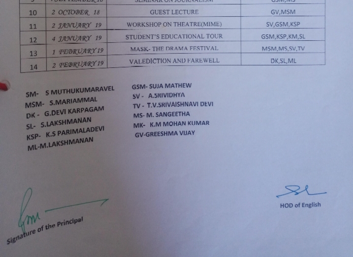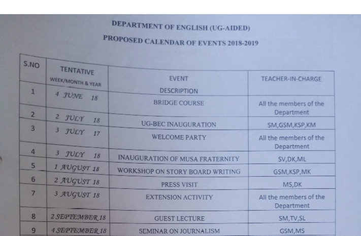 Established in 2010. As there is a growing need for English literature and language, it had been started to carter the demands of the students in the present and in the future. The department has the unique pride of serving rural students from economically backward & socially challenged. It is privileged to have students from diverse socio-economic backgrounds and learning curves. Amble opportunities, care, platforms and exercises are given to the students to make themselves unique in this fast world.