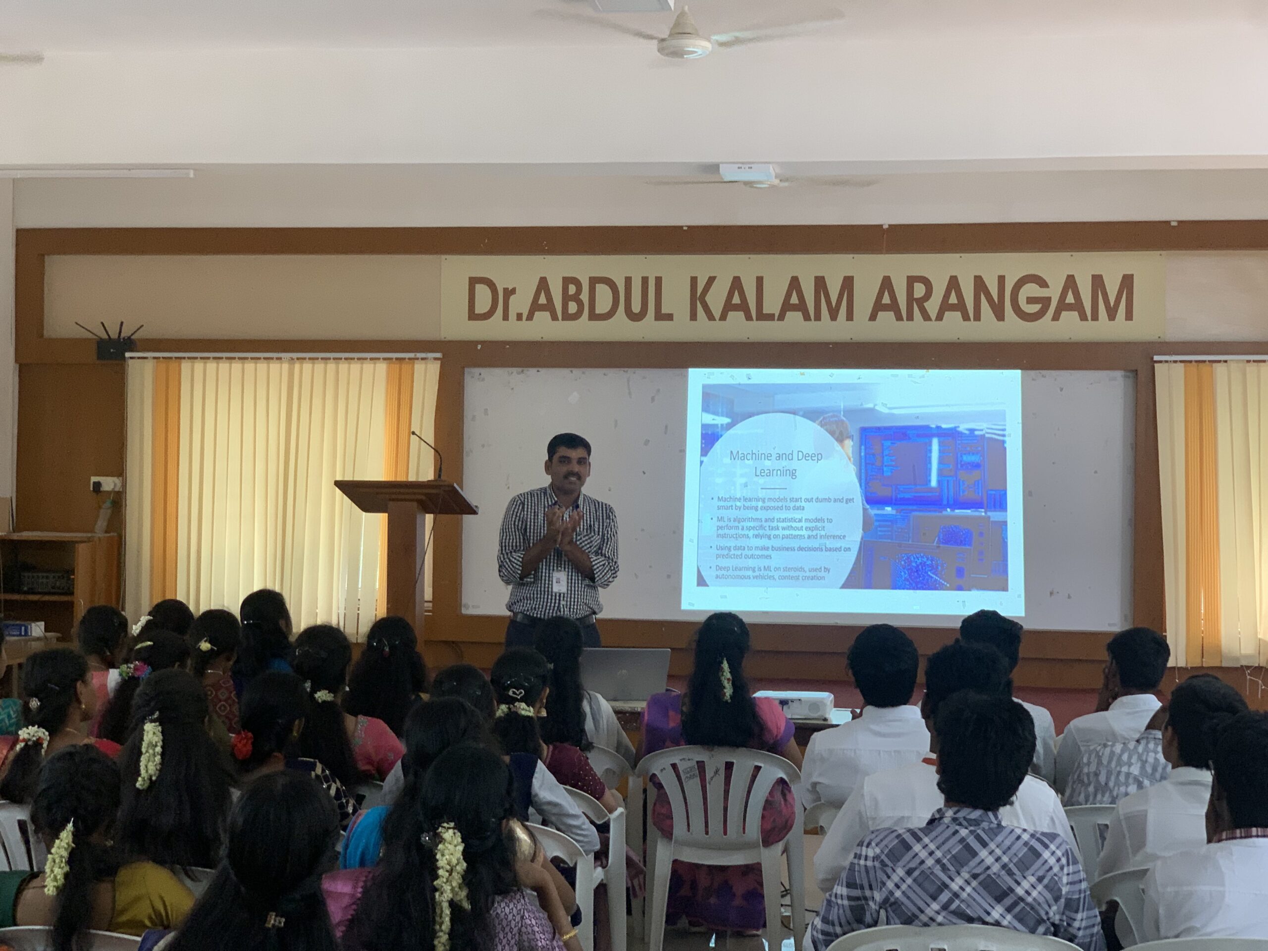 AI happens to be the buzz word in the recent years. Artificial intelligence (AI) has become a game-changing technology in plethora of domains and its effects on leveraging higher education is drawing more and more attention. AI has several options for enhancing the standard and accessibility of education, with the ability to revolutionise administrative, teaching, and learning procedures. It is the most sought out technology in the current times.Owing to the importance of Artificial Intelligence, the management of Nallamuthu Gounder Mahalingam College had a fore thought to introduce a UG Programme in Computer Science with Artificial Intelligence & Machine Learning. The department had its inception in the Academic Year 2022-2023. Our three-year Artificial Intelligence and Machine learning course has been structured to give thorough understanding of the field of computer science whilst providing you with the opportunity to develop a strong theoretical grounding in Artificial Intelligence with many opportunities to put things in to practice. Artificial Intelligence is one of the current hot topics in Computer Science and of the society more broadly. It is at the heart of everyday technology and the understanding and application of AI holds the key to solve many current and future real-world problems.