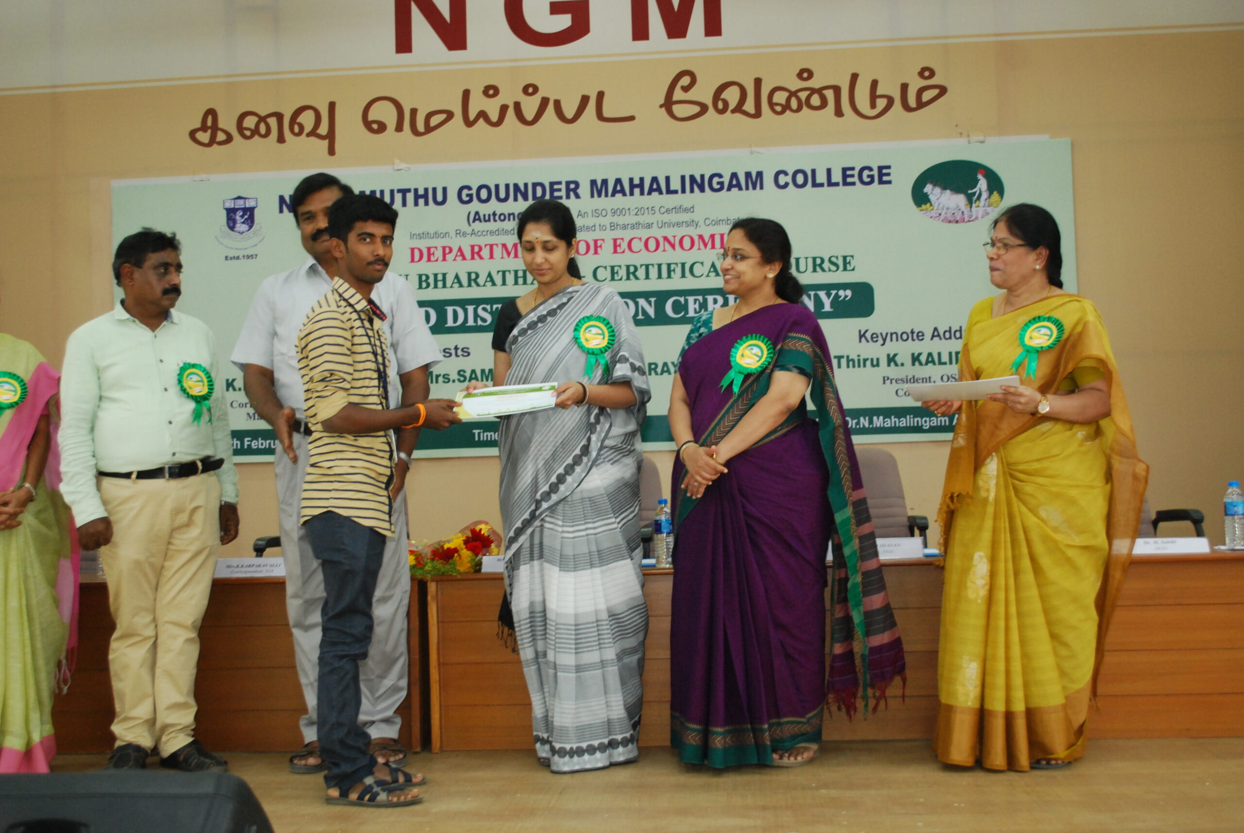 NGM is unique and different. It’s a legend, ever ancient and ever new, painstakingly built over the last 55 years by the hard and combined efforts of all the stakeholders. It is a mystique that spells excellence, dedication, quality and relevance and the heart beat of the students and a household name in Pollachi. The department of economics is 55 years young – a moderate innings indeed but with dedicated service. Driven by experienced and highly qualified faculty, aided by a dynamic curriculum design and state-of-the art academic infrastructure, the department offers its students a course on par with the best institution of the region. The structure of the course as well as the academic rigour triggered of ensures that the students of the department of economics, are well-equipped with the analytical skills and the temperaments and talents required to grapple with the complex issues they would face in their chosen field. The department organises seminars, workshops and conferences with a wide variety of issues, to provide a platform for discussing and disseminating the latest economic issues at national and international levels.