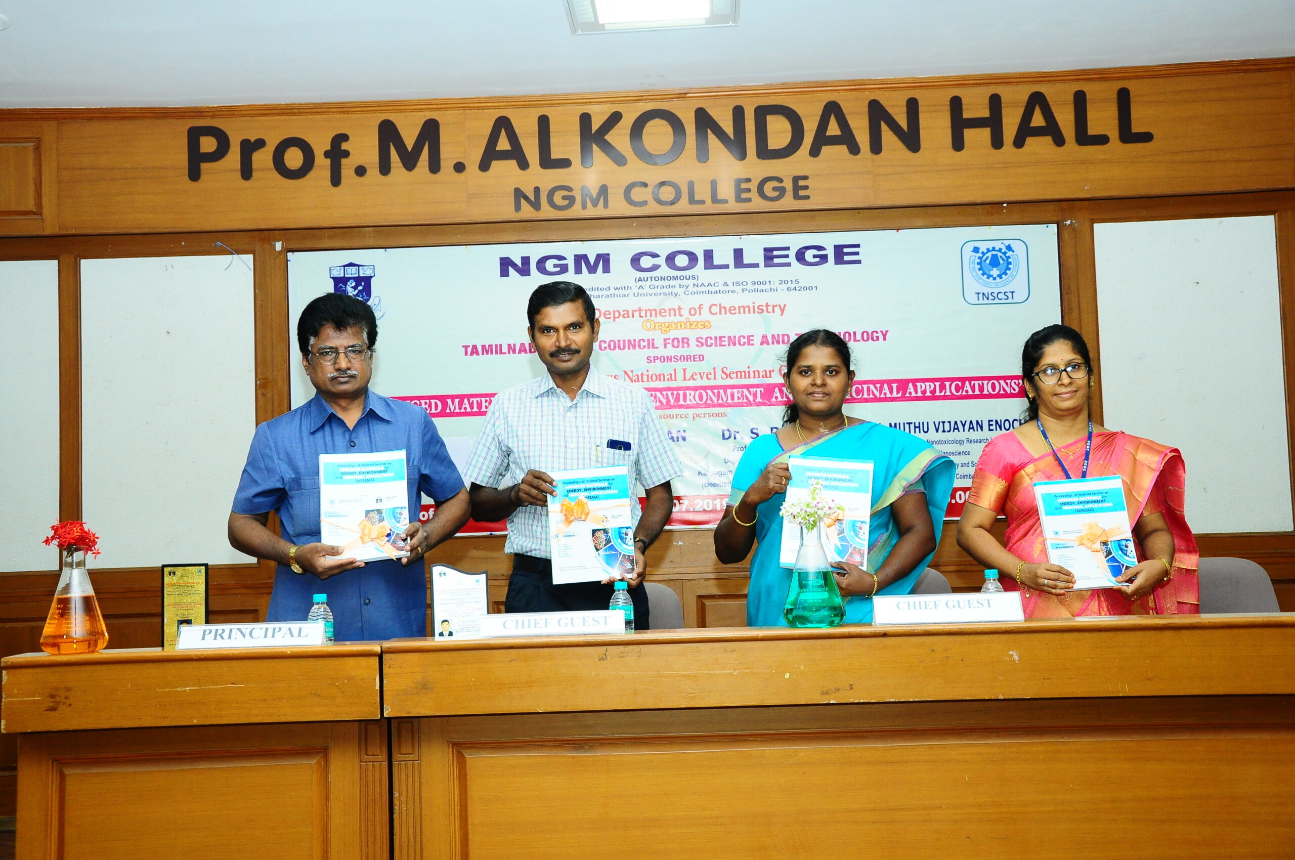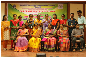 PG Department of Chemistry was established in 2015. The aim of our department is to promote quality education by motivating the practical skills, update knowledge, creativity and progressive research environment to meet the demands of various research institutes and industries. The curriculum has been designed and taught by active, energetic faculty members to impart knowledge and guide the student scientists. The department laboratories are well equipped and furnished with modern instruments necessary for the students to carry out their experiments and research. Our prominent research fields are Nano Material Synthesis, Phytochemistry, Synthesis of Coordination complexes, Organic Synthesis, Environmental Chemistry and biological activities like Antioxidant and acetyl cholinesterase studies etc,. All the faculties are actively involved in academic and research activities. The students are encouraged to take internships/training in reputed industries. The department also avail extension activities for the students in Food adulteration, Handmade Soap making, Standardization of herbal drugs, Herbal tooth powder, Herbal washing powder etc.,