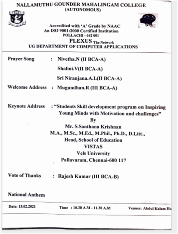 Students Skill Development Program on Inspiring Young Minds with Motivation and Challenges By adminMarch 13, 2024