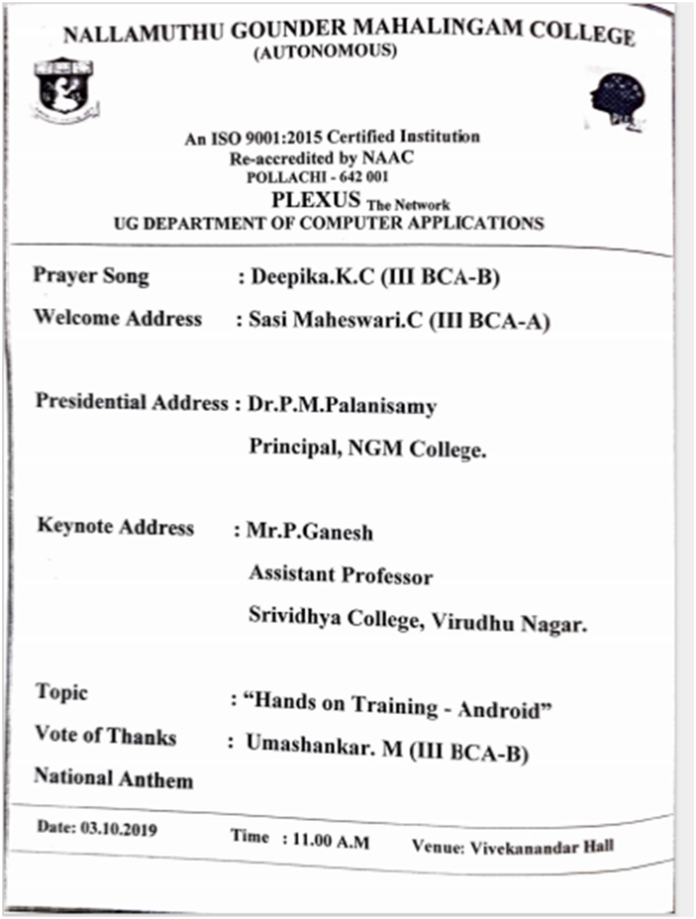 Career Development and Recent Trends in Information Technology” Mariammal Girls Higher secondary School, Pollachi By adminMarch 12, 2024