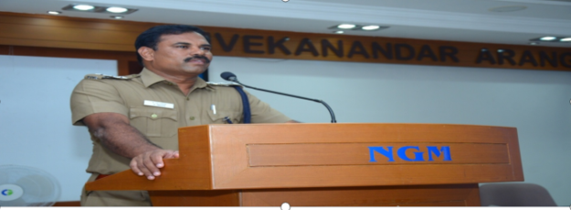 One Day Workshop on GENERIC CONUNDRUM OF CALLOW YOUTH ON 19.02.2019 at VivekanandarArangam (Boys) MR.R.Jeyaram M.Com, Deputy Superindent of Police, Pollachi. delivering a speech on the topic ” Law Enforcement” on 19.02.2019 for session – 1