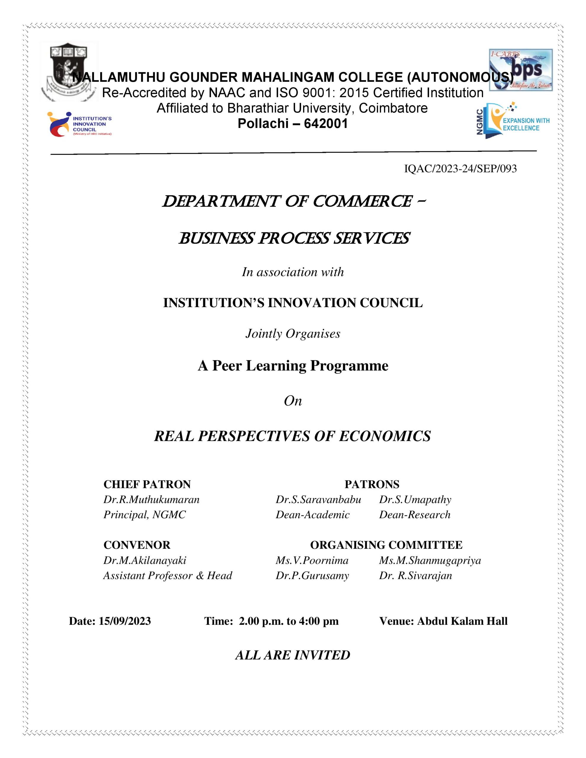 A Peer Learning Programme On “REAL PERSPECTIVES OF ECONOMICS”