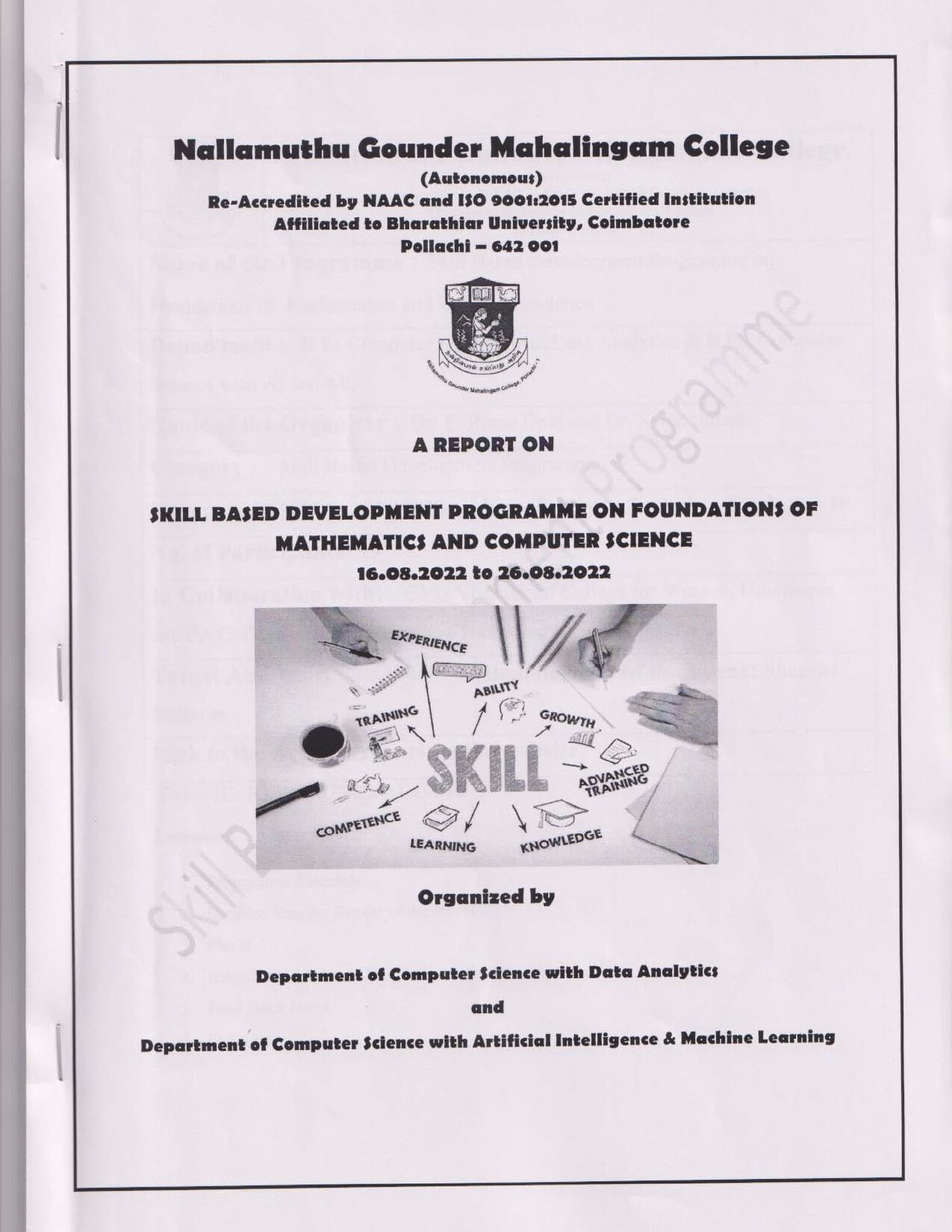 A Skill Based Development Programme on Foundations of Mathematics and Computer Science