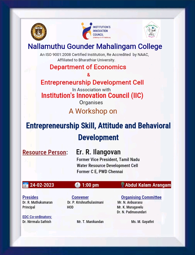 A Workshop on Entrepreneurship Skill , Attitude and Behavioral Developement