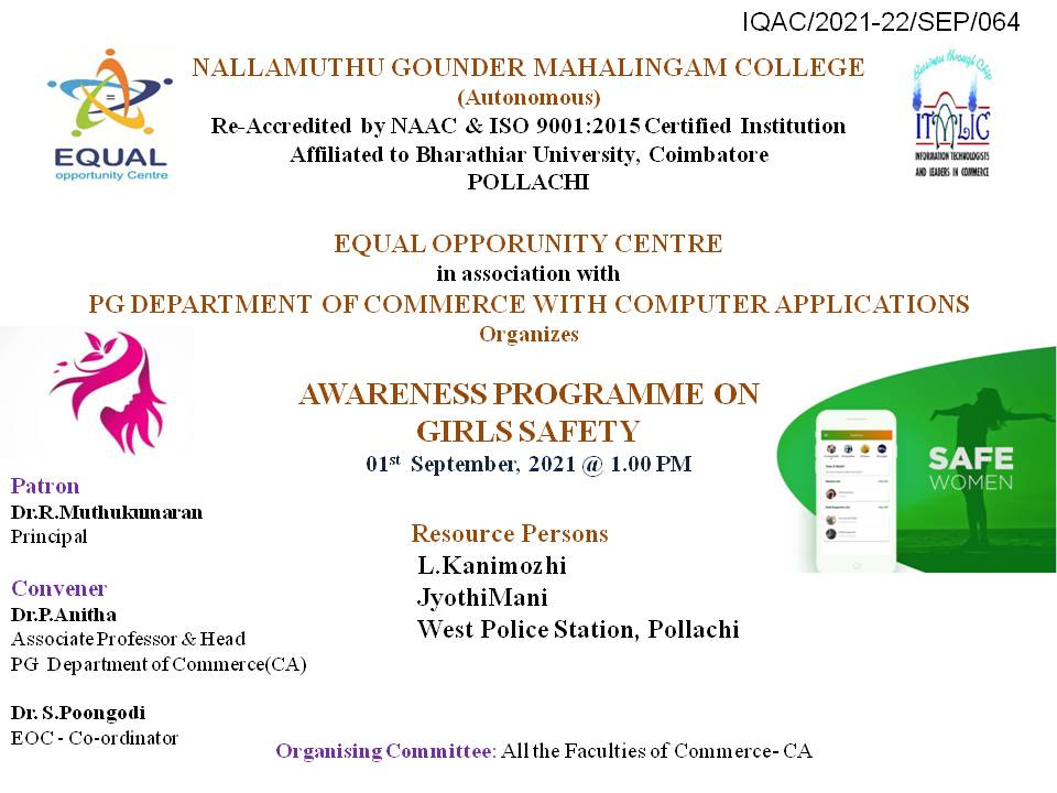 Equal Opportunity Centre in assocation with PG Department of Commerce with Computer Applications