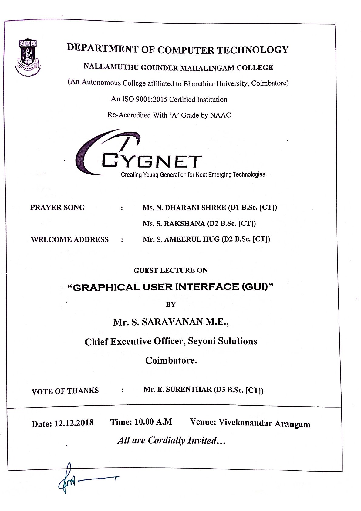 NGM COLLEGE : EVENTS