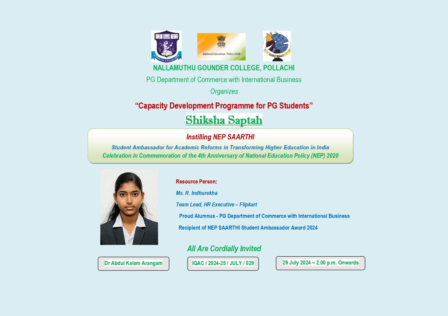 Capacity Development Programme for PG Students – Shiksha Sapatah