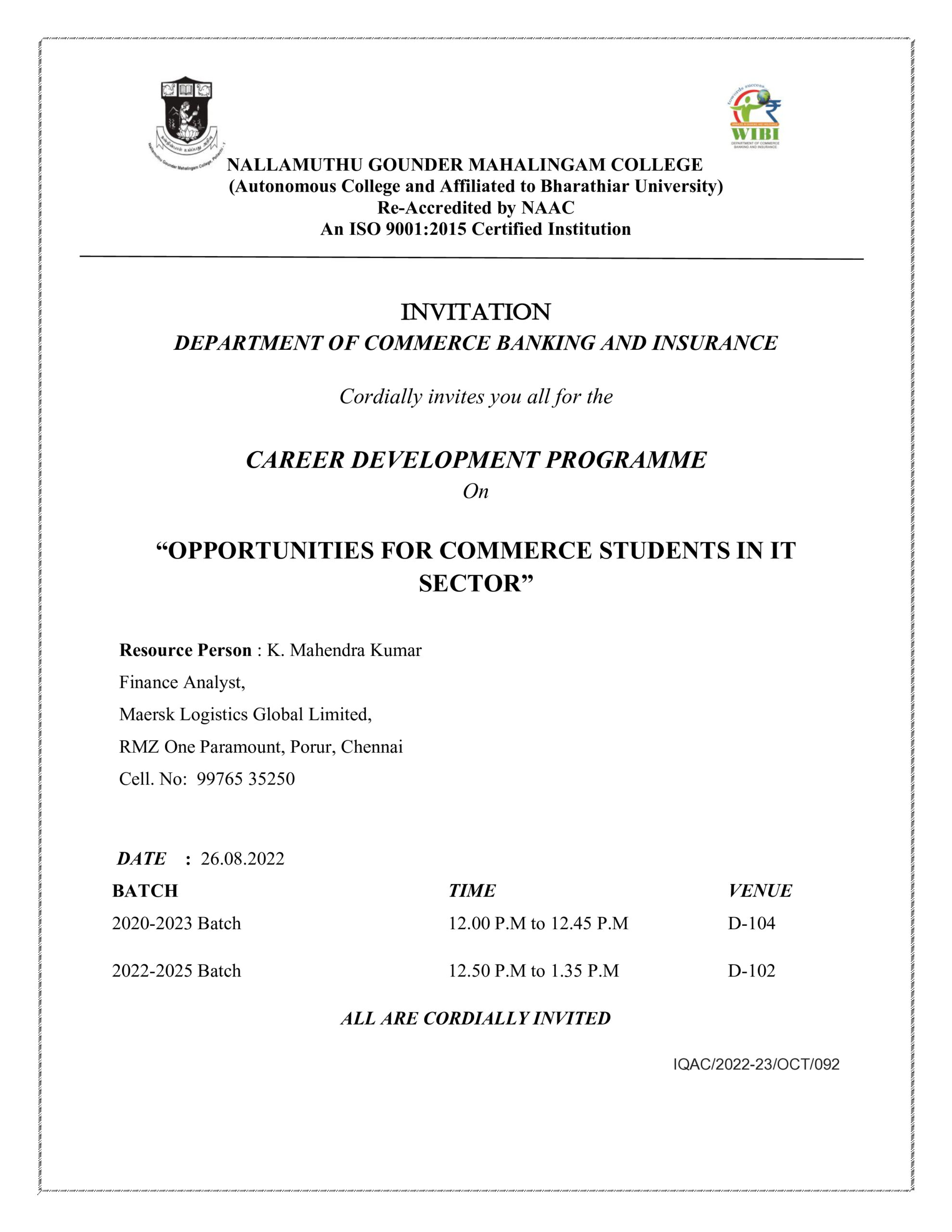 CAREER DEVELOPMENT PROGRAMME On “OPPORTUNITIES FOR COMMERCE STUDENTS IN IT SECTOR”