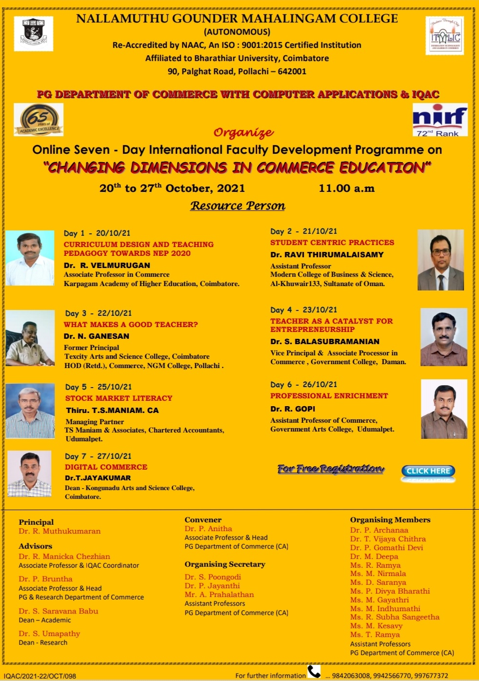 CHANGING DIMENSIONS IN COMMERCE EDUCATION- SEVEN DAYS INTERNATIONAL FACULTY DEVELOPMENT PROGRAMME