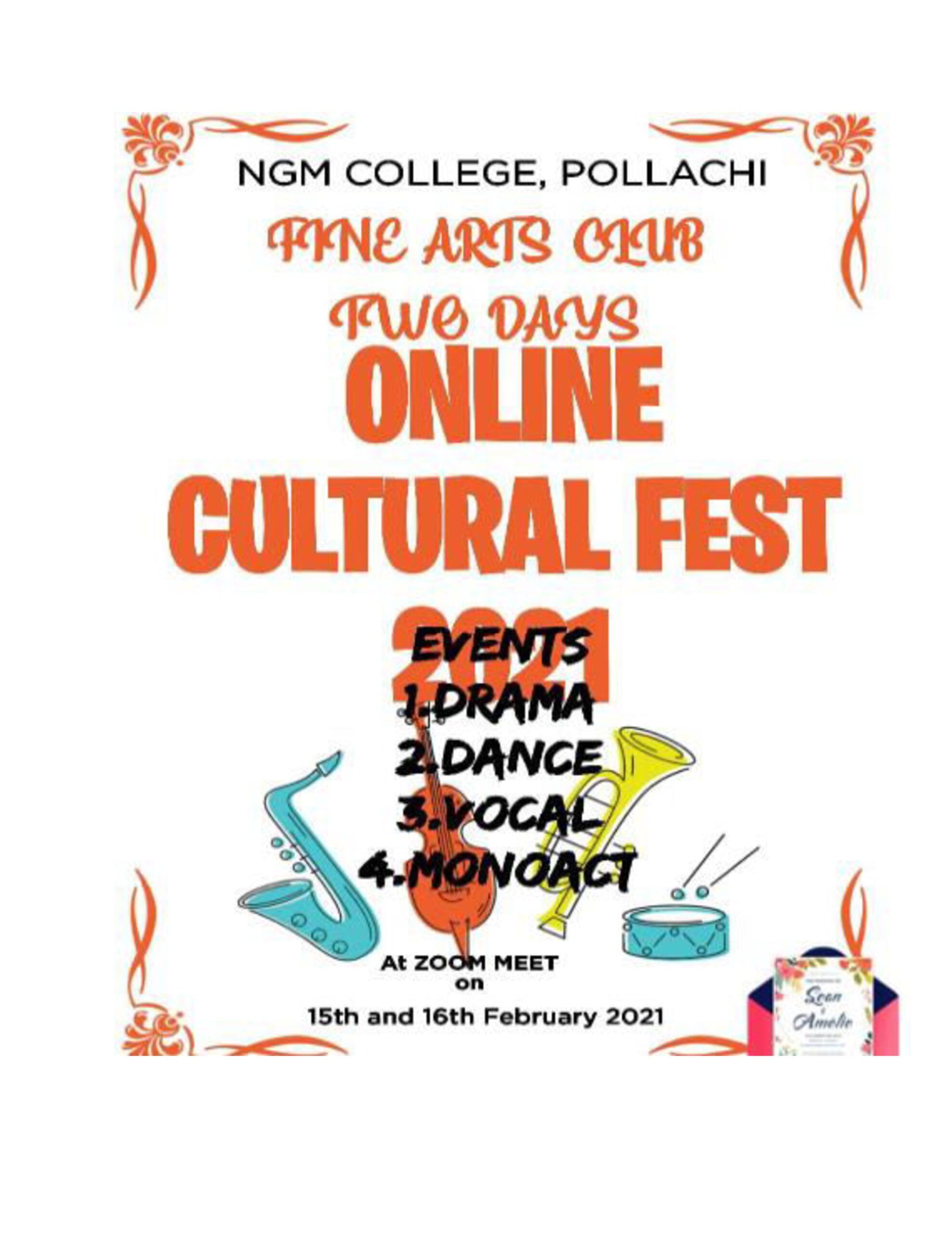 Cultural Fest is Organized by Dept. of Tamil Literature on 15.2.21 to 16.2.2021 .