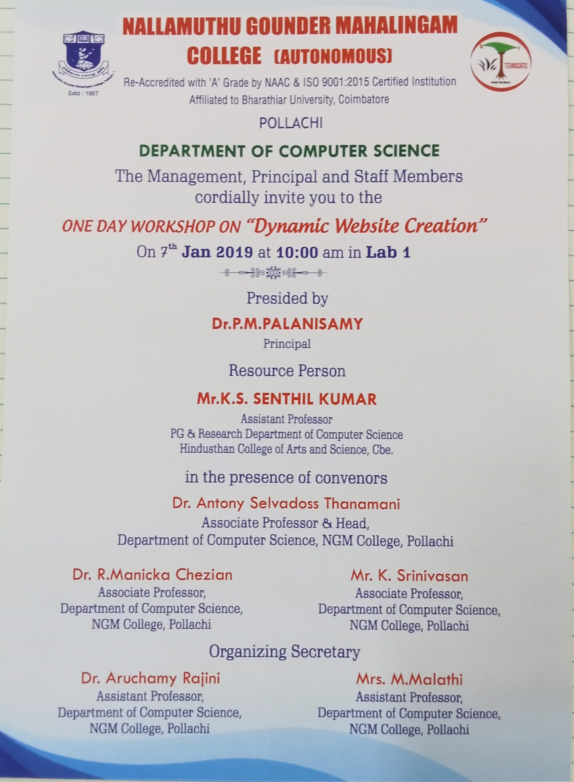 Department of Computer Science (Aided) – Workshop on ” Dynamic Website Creation “