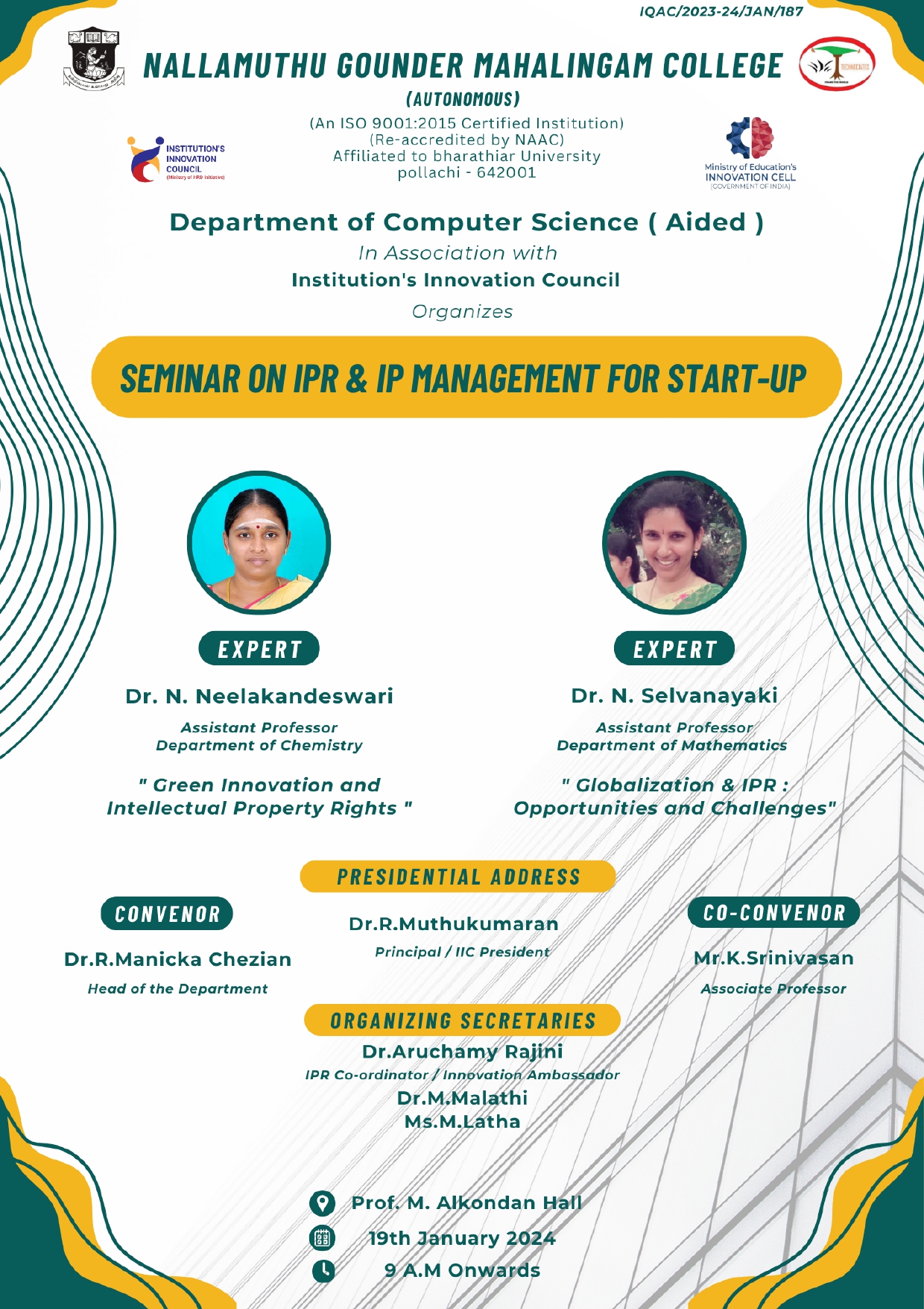 Department of Computer Science (Aided) – Seminar on IPR & IP Management for Start-Up