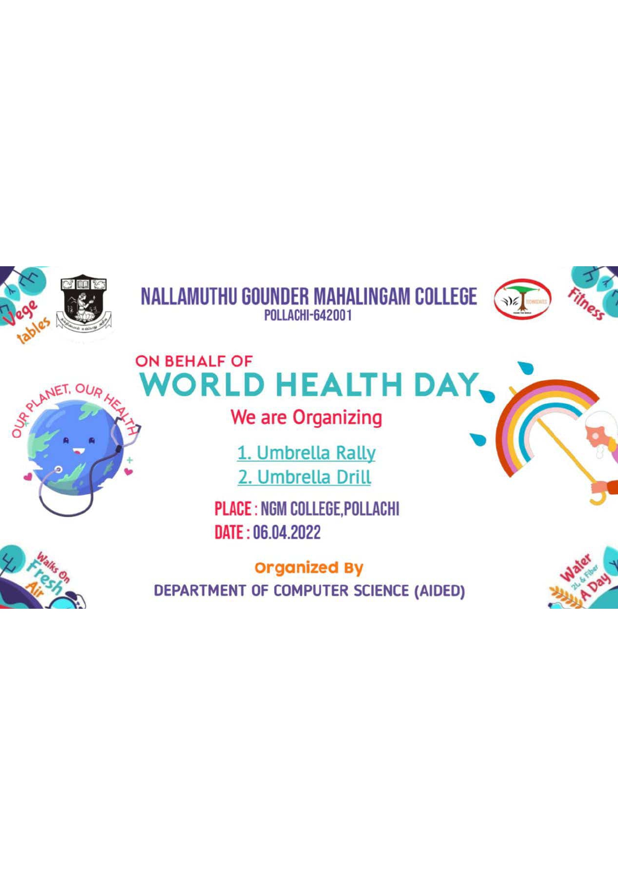 To invoke a exposure in the minds of public, the students of Computer Science (Aided) executed an idea-Umbrella Rally. On the search to create an awareness and as a new era umbrella was selected as a key prop to create awareness. This outset was organised by the Department of Computer Science (Aided), for a fine outlet.