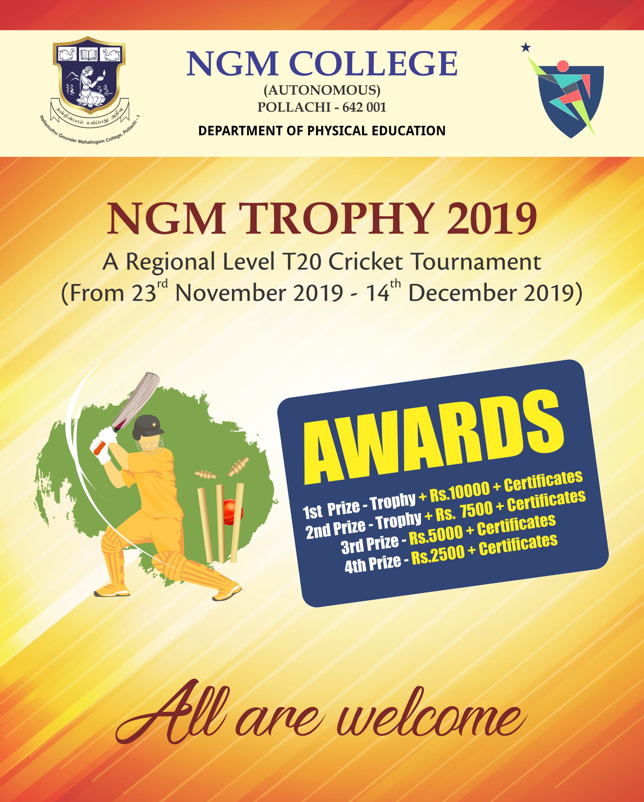 The Department of Physical Education has Organized A Regional Level T20 Cricket Tournament at NGM College From 23.11.2019 to 14.12.2019.