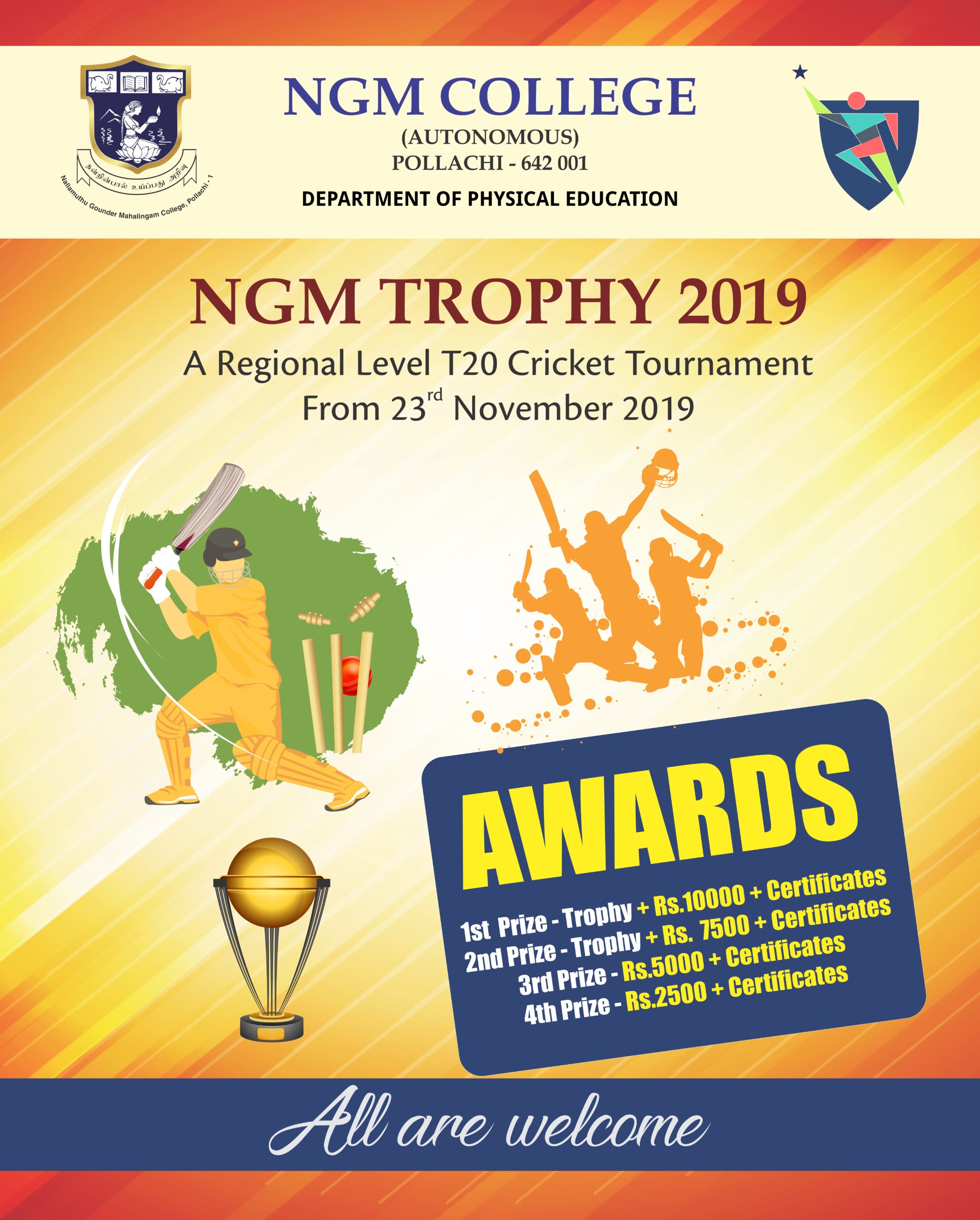 The Department of Physical Education has Organized A Regional Level T 20 Cricket Invitational Tournament at NGM Criket Field From 23.11.2019 to 28.11.2029.