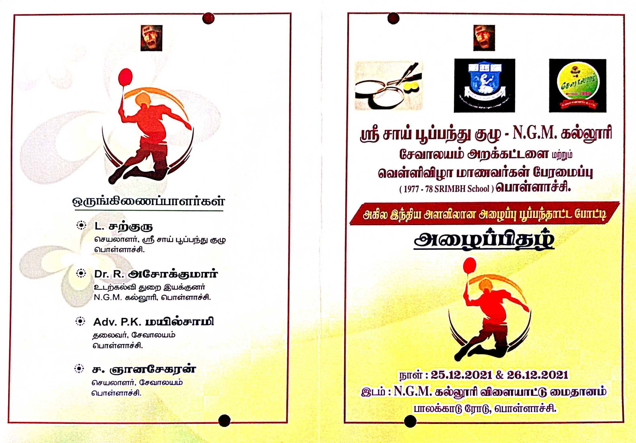 The Department of Physical Education has Organized All India Ball Badminton Tournament at NGM College From 25.12.2021 to 26.12.2021.