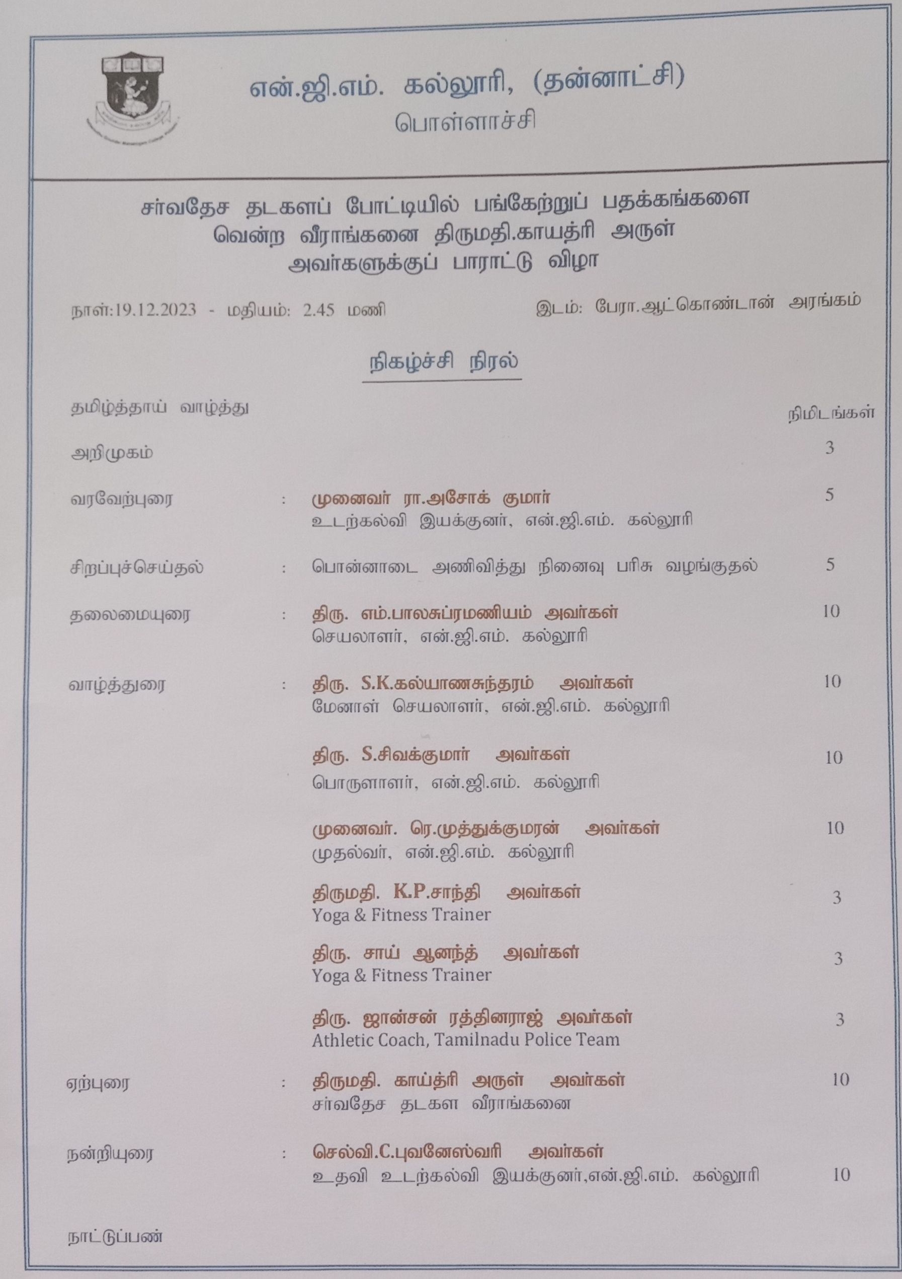 Thiru.M.Balasubramaniam (NGM College Secretary), Thiru.S.K.Kalyanasundharam (NGM College Former Secretary), Thiru.S.Sivakumar (NGM College Treasurer)