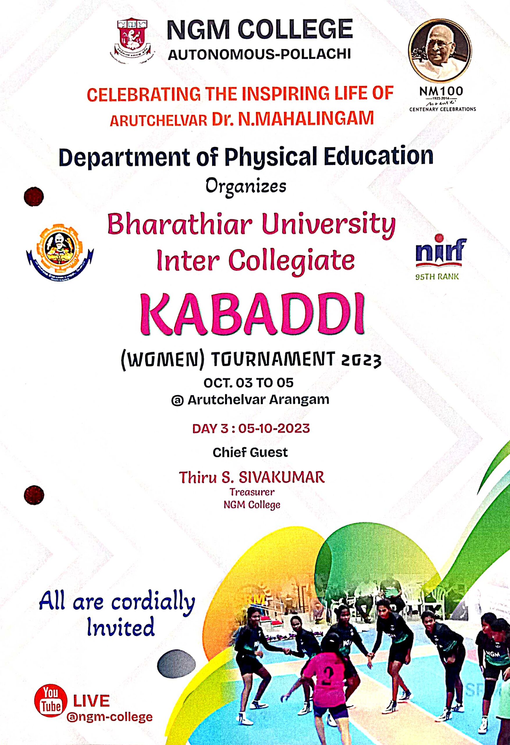 Department of Physical Education- NGM Sports Academy- Bharathiar University Inter Collegiate Kabaddi (Women) Tournament