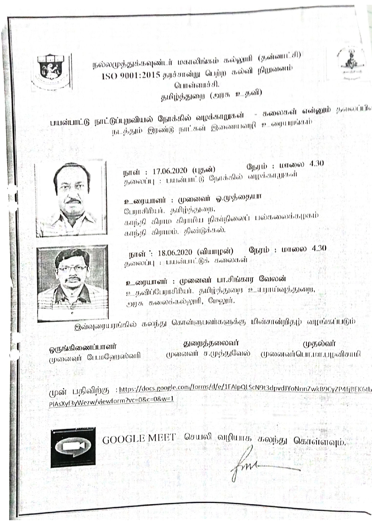 Department of Tamil Language Aided,Kalanjiyam,Naattuppuraviyal…