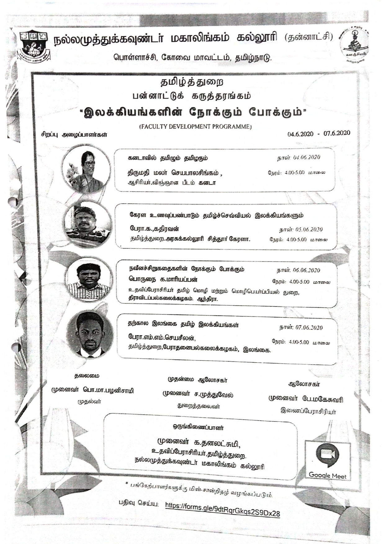 3. “Perspectives and Trends of Modern Short Stories” Porunai K. Mariappan, Assistant Professor, Department of Tamil Language and Translation, Dravidian University.