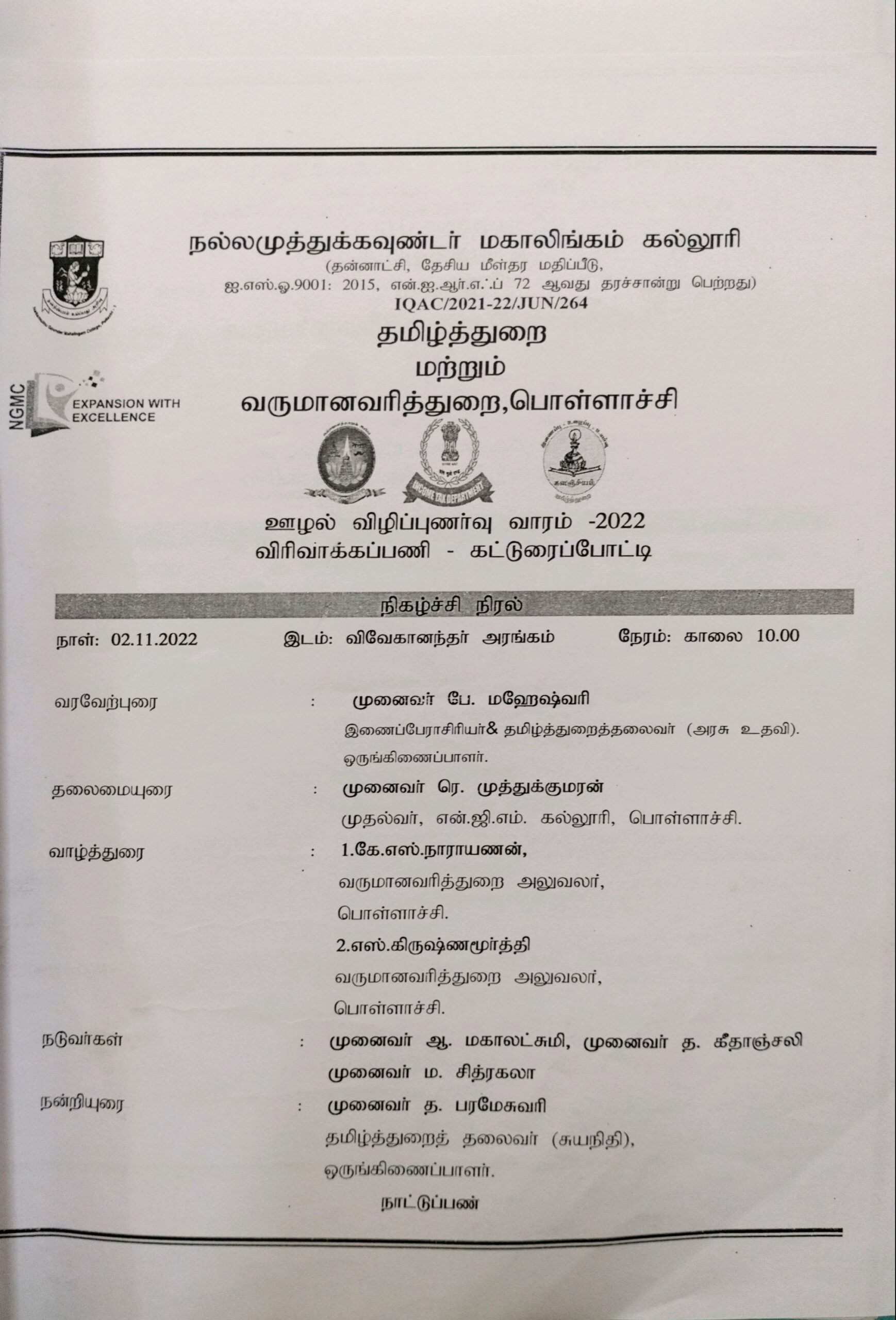 Department of Tamil(Aided) & Income Tax Department
