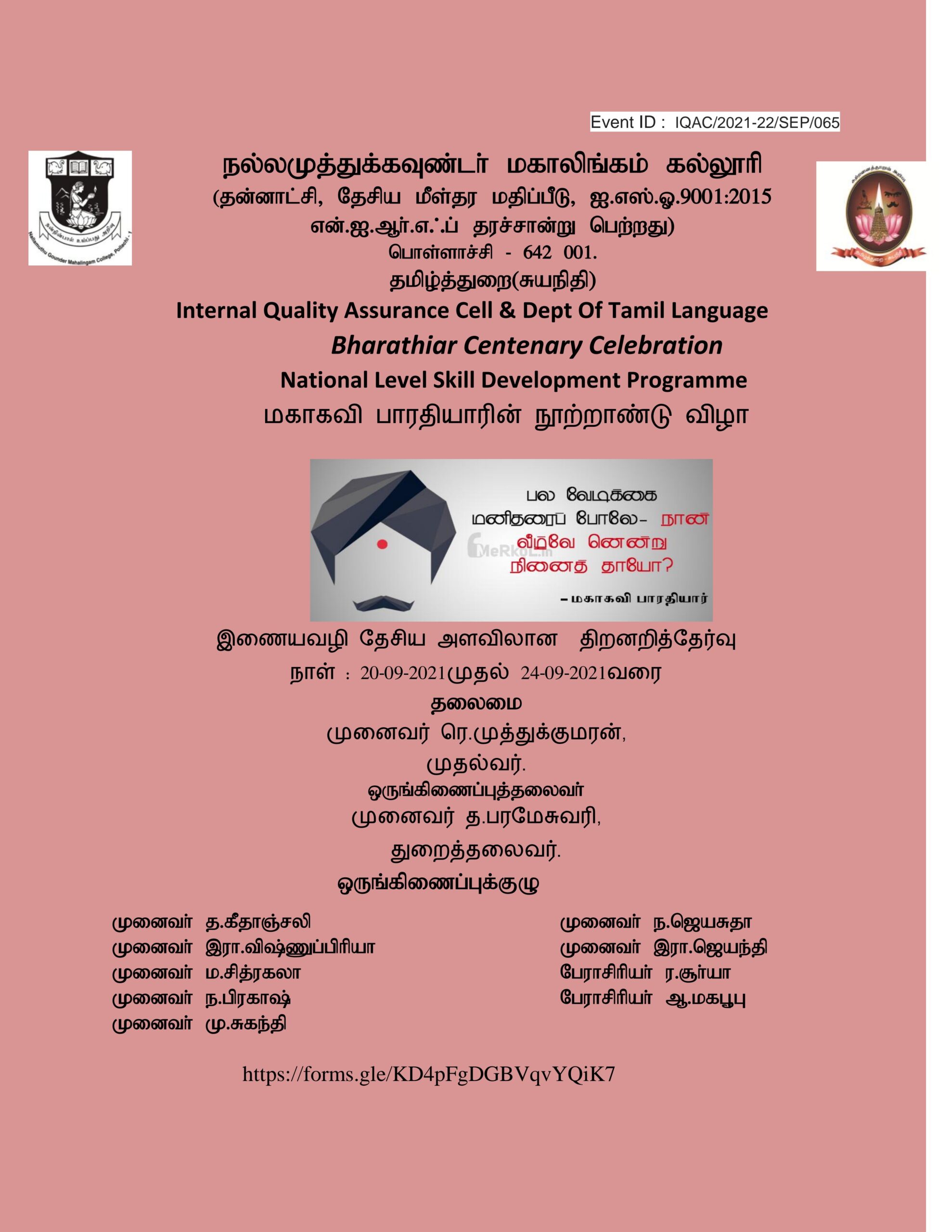Dept of Tamil language sf – Bharathiyar centenary celebration -National level skill development programme