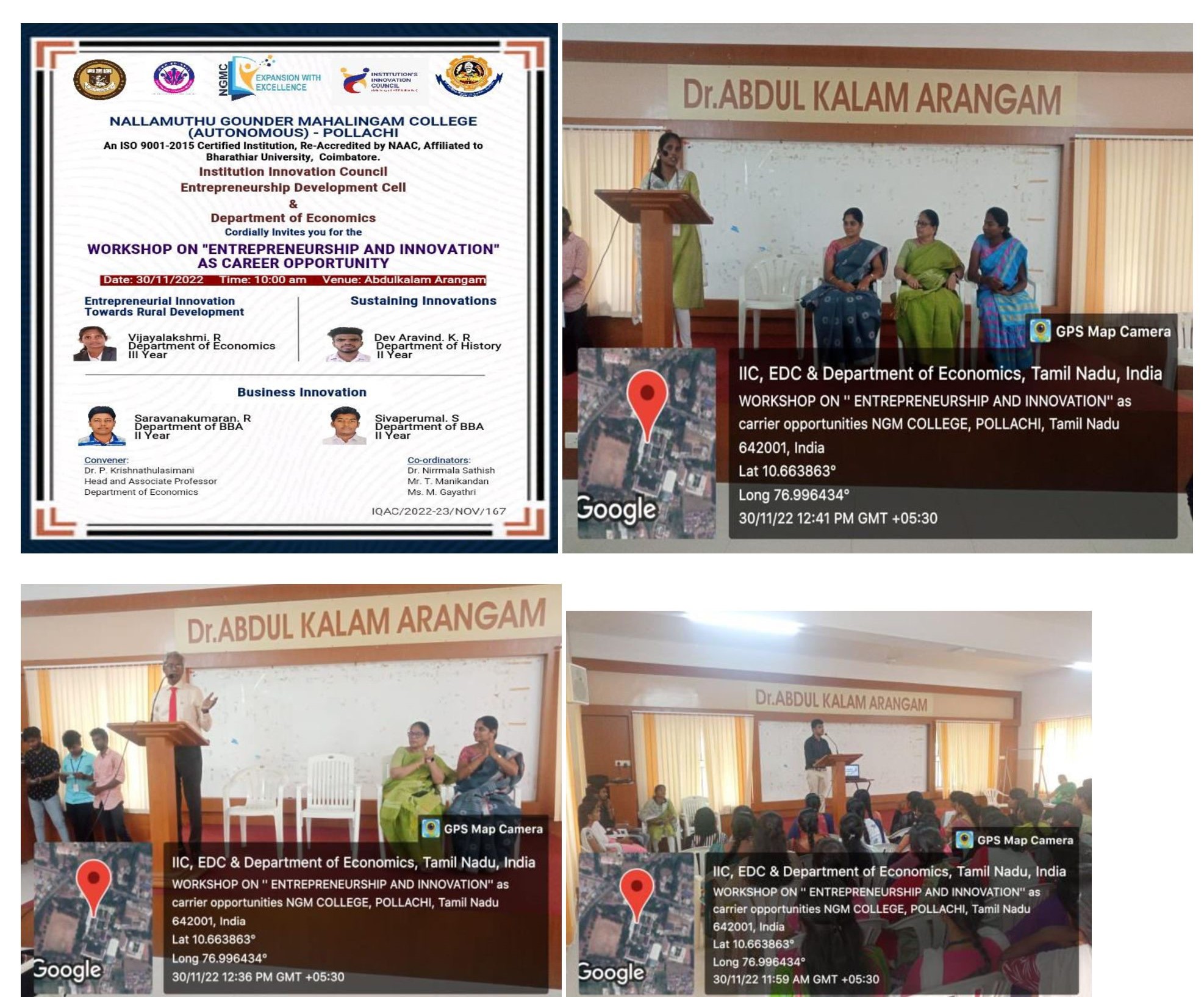 Entrepreneur Development Cell and Department of Economics in association with Institution’s Innovation Council organised a Workshop on “Entrepreneurship and Innovation as a Career Development on 30.11.2022