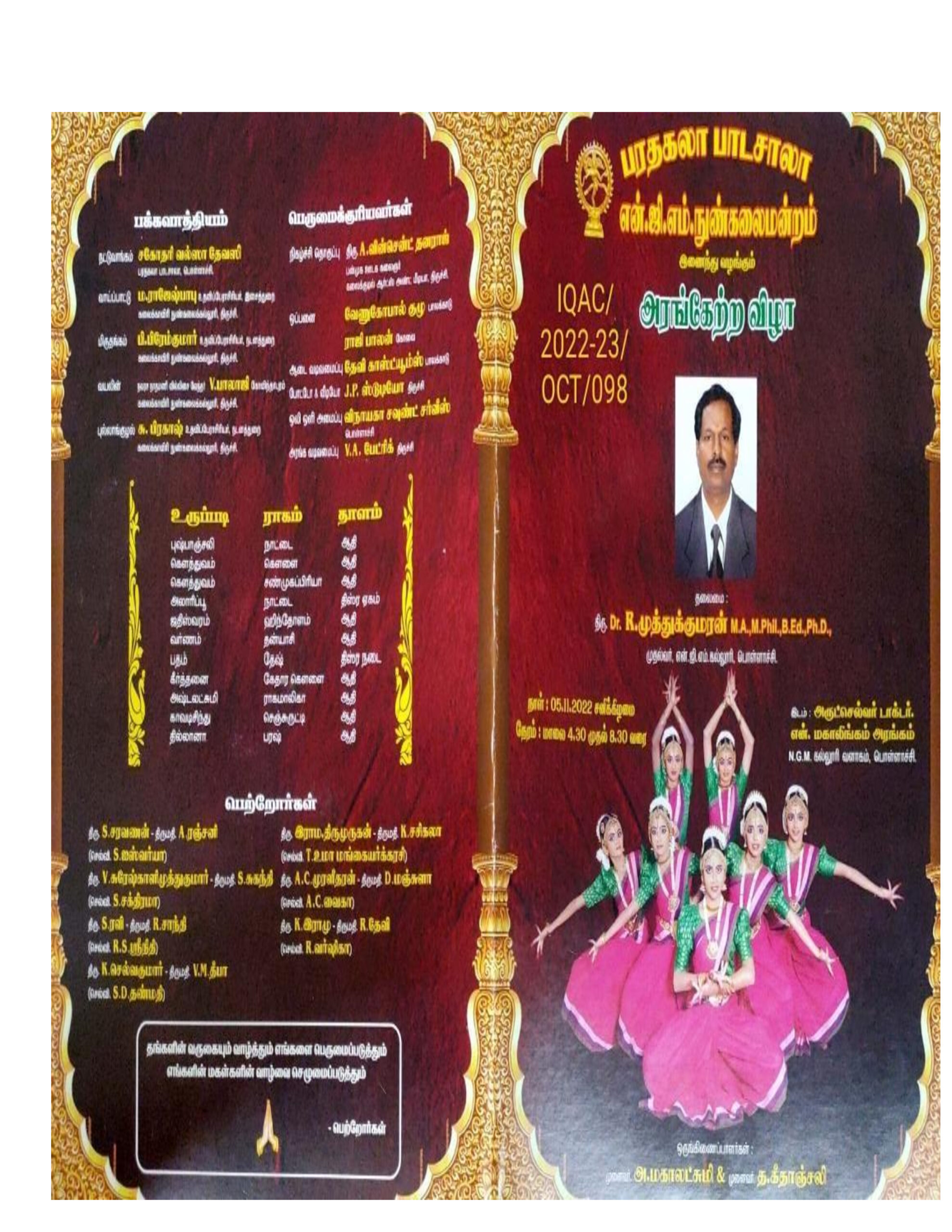 Bharatakala Pada Salala and Munakalala Munara jointly organized a stageless festival on 05.11.2022 at Arutchelvar Arangam. 25 students participated and showcased their dancing skills. Prizes were awarded to those who participated in the event. 800 graves participated in the event and reached the annual final.