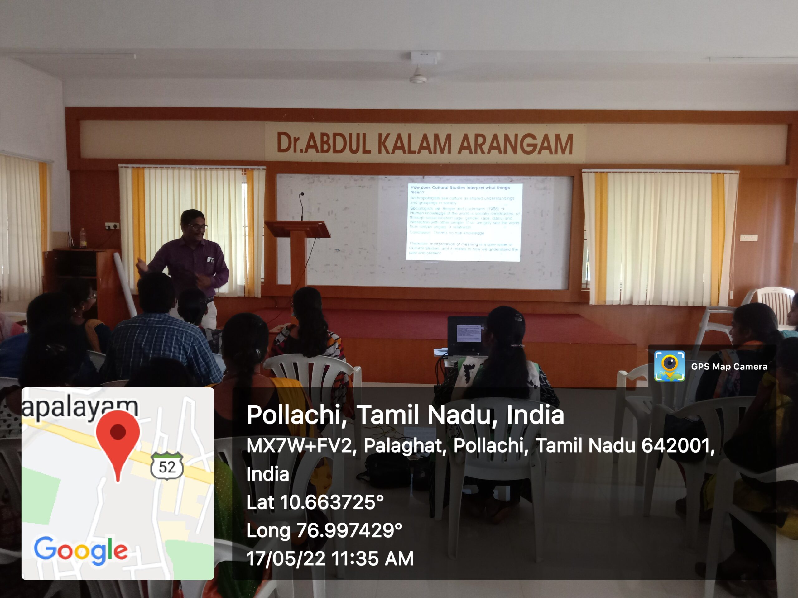 Dr.S. Henry Kishor, Associate Professor, Department of English, Sri Krishna Arts and Science College, Coimbatore delivered a lecture on “Cultural Studies” to the Postgraduate students of English Literature of our college on May 17, 2022. The lecture was interactive and the resource person explained the topic with relevant examples. It was very useful to the students to understand and apply cultural theories to examine the cultural aspects in literature. It will be helpful to the students to do their research in future.