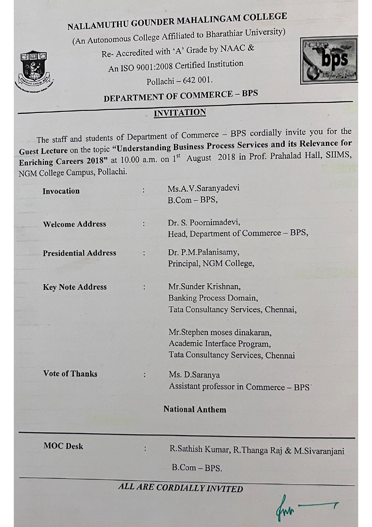 Guest Lecture on “Understanding Business Services and its Relevance for Enriching Careers 2018”