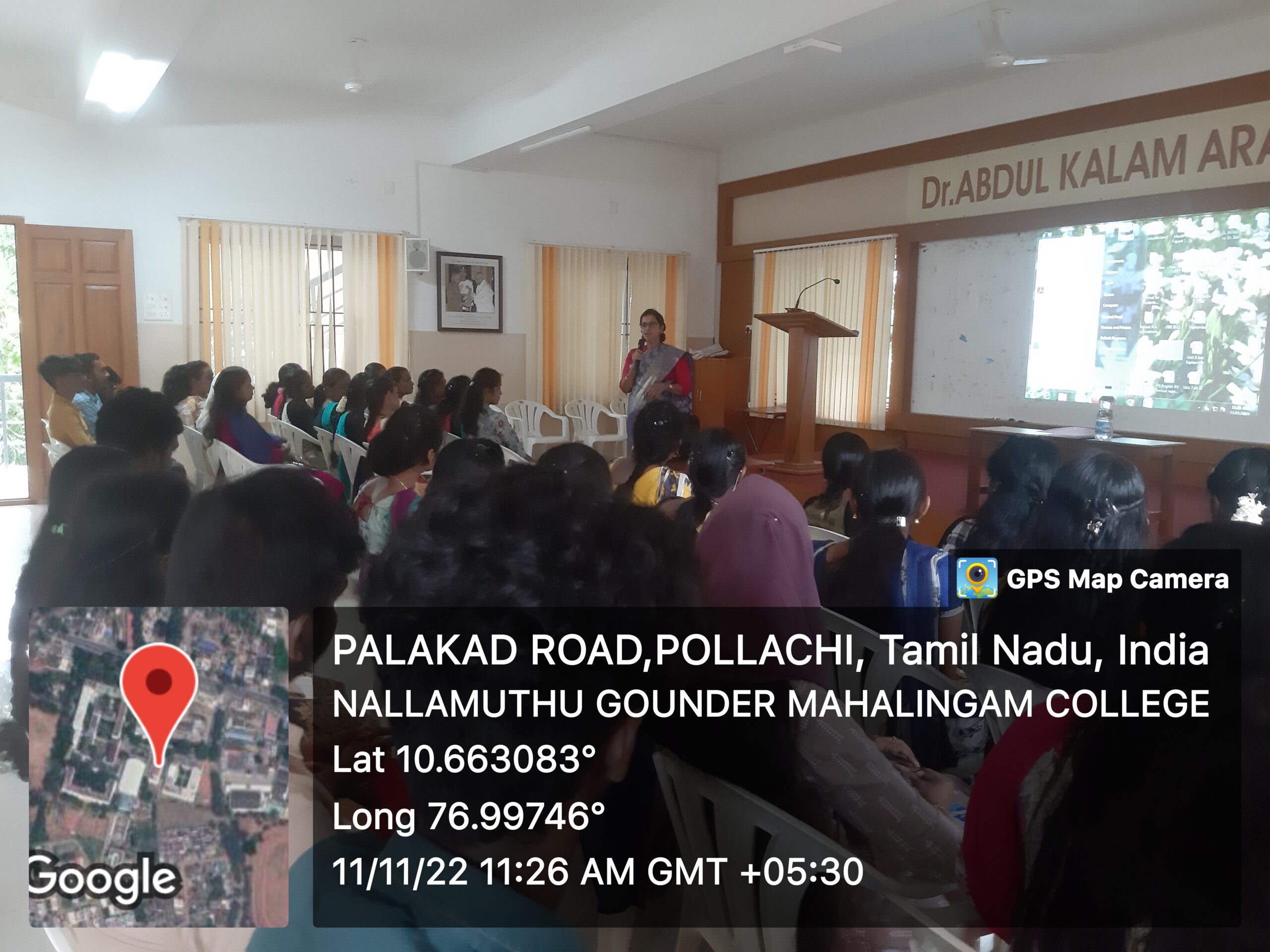 Postgraduate Department of English organised a Guest Lecture programme on 11.11.2022 between 10:00 a.m and 1:00 p.m at Dr. Abdul Kalam Arangam. Dr.G.Banumadhi, Assistant Professor, Department of English, Thiagarajar College of Arts and Science, Madurai delivered a lecture on “ Redefining the role of a Woman as a Listener, Speaker, Reader and Writer ”. The programme began with a prayer song by the II students. 40 students attended the programme and benefited. The programme helped the students to better their knowledge on the role of woman as a listener, speaker, reader and writer. Ms. R. Sudha, Assistant Professor of English delivered the welcome address. Ms. P.A. Francia, Assistant Professor of English proposed a vote of thanks.