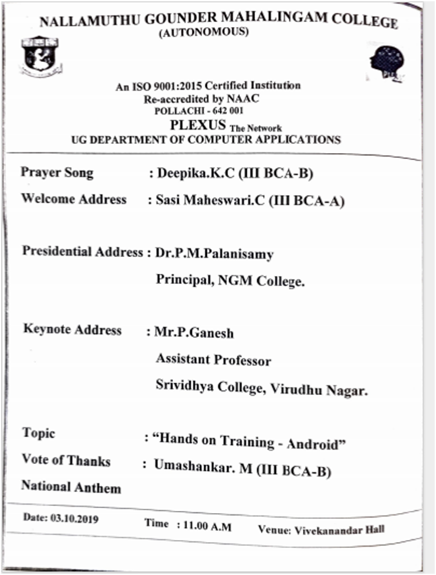 NGM COLLEGE : EVENTS