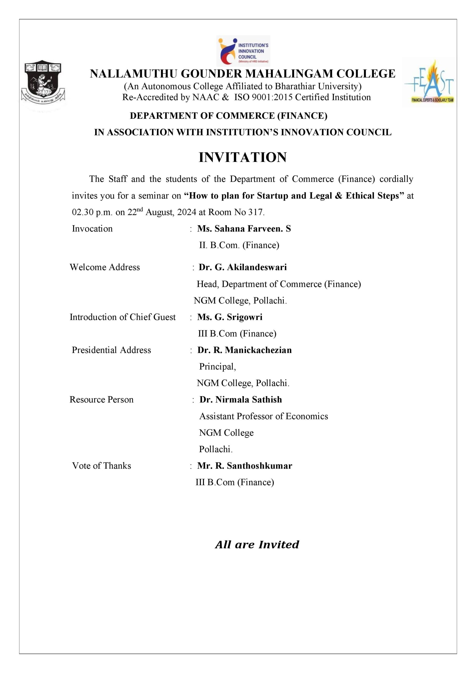 DEPARTMENT OF COMMERCE (FINANCE) IN ASSOCIATION WITH INSTITUTION’S INNOVATION COUNCIL