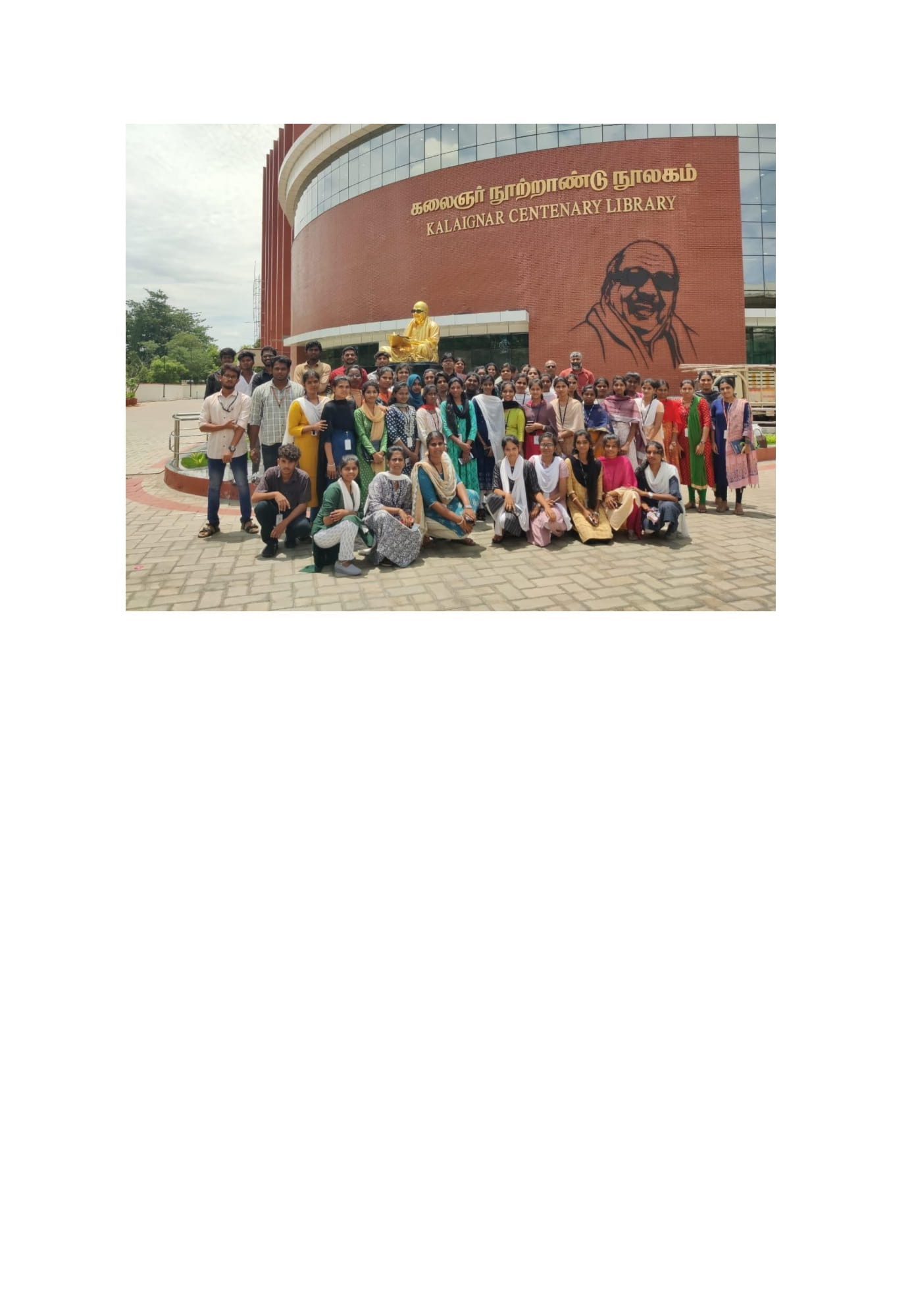 On 12.9.2023 students of III B.A. English Literature were taken to Kalaignar Centenary Library Visit and referred the books after this they witnessed the Drama enactment at American College Madurai performed by PG students of N.G.M. College