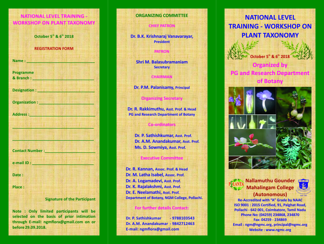 NATIONAL LEVEL TRAINING WORKSHOP PLANT TAXONOMY