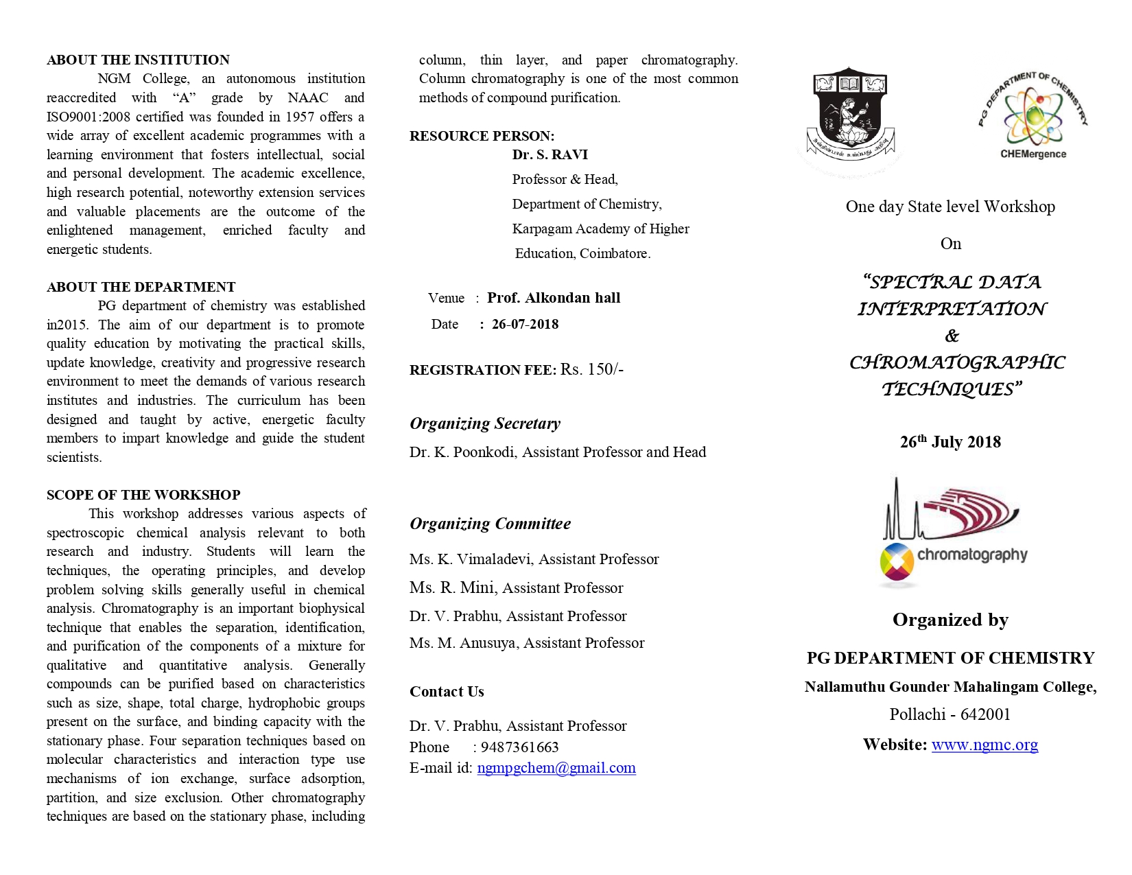 One day State level Workshop on “SPECTRAL DATA INTERPRETATION & CHROMATOGRAPHIC TECHNIQUES”