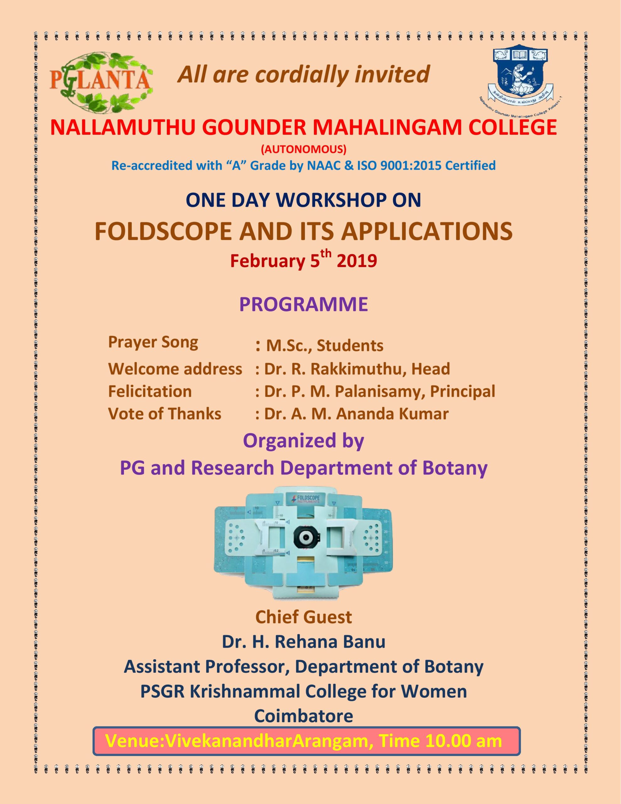 Assistant Professor, Department of Botany PSGR Krishnammal College for Women Coimbatore |