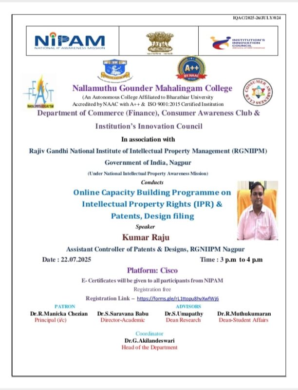 Online Capacity Building Programme on Intellectual Property Rights (IPR) & Patents , Design filing
