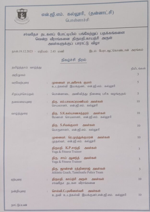 The Department of Physical Education has Organized Appreciation for Sports Women at NGM College on 19.12.2023.