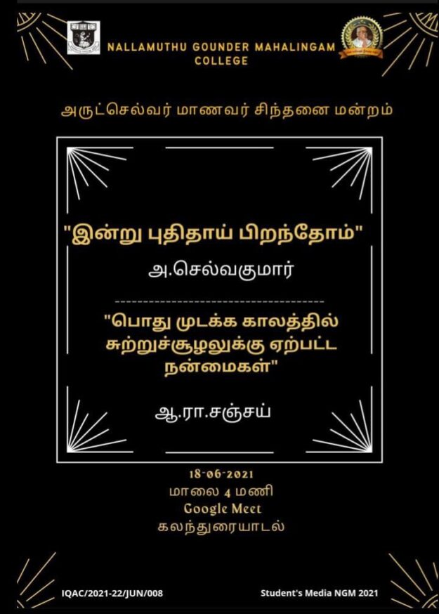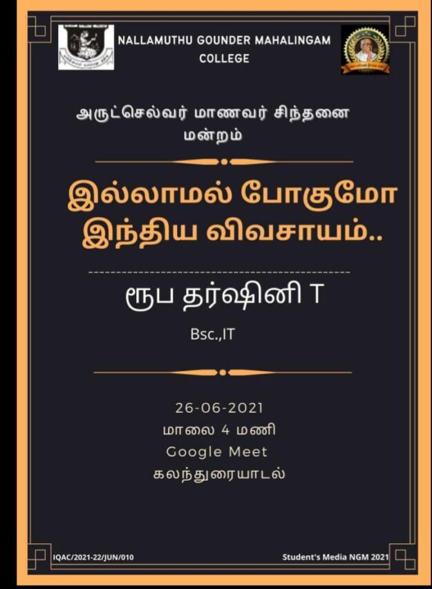 23/07/2021 A seminar was held on the topic of preventing global warming from wasting water.Mr.R. Manikandan commented on the protection of the ponds and the cleansing of the ponds when he was speaking.