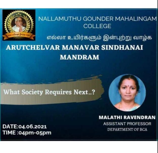 Dr.Malathi Raveendran’s Assistant Professor of BCA MGM College, titled what required next…? Discussed what the students need from this community and how students should prepare themselves for it.