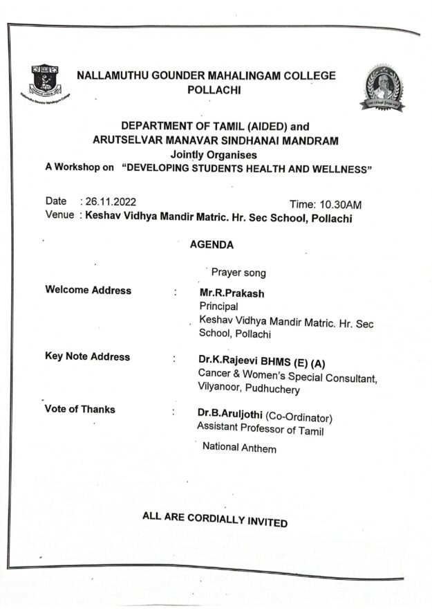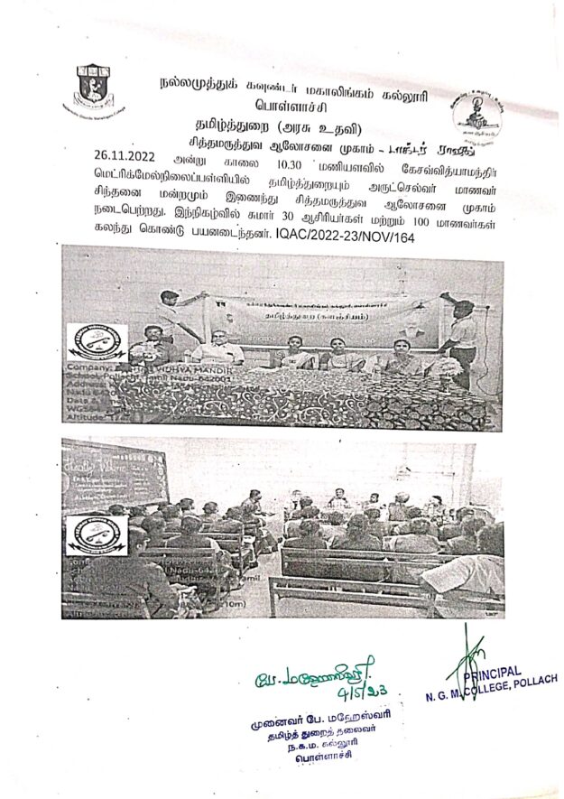 Department of Tamil,Kalanjiyam,Siddha Medical Counselling Camp .