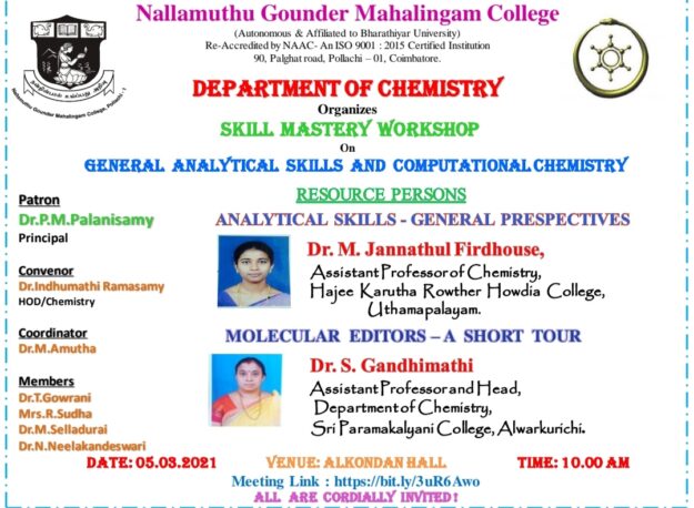 Entrepreneurship Development Cell and Department of Economics, Nallamuthu Gounder Mahalingam College, (Autonomous), Pollachi in association with Entrepreneurship Development and Innovation Institute (EDII) – TN Hub, Government of Tamil Nadu, Bharathiar University, Coimbatore-641 046, has jointly organized a Workshop on “Entrepreneurship Awareness and Government Schemes Essential for Innovation in Product Development” for the benefit of students…
