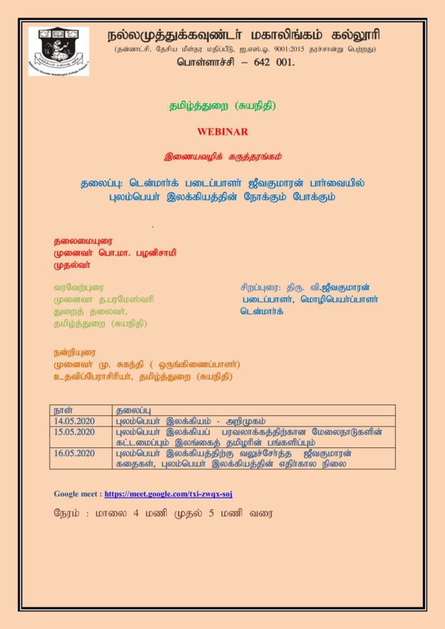 Dept of Tamil language -sf Tamil international seminar Tamil ilakkiyathil aalumai