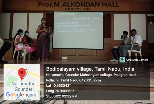 Nallamuthu Gounder Mahalingam College Quiz Club has conducted a quiz competition on 25.03.2022, Friday at 2.00 pm Alkondan Hall.